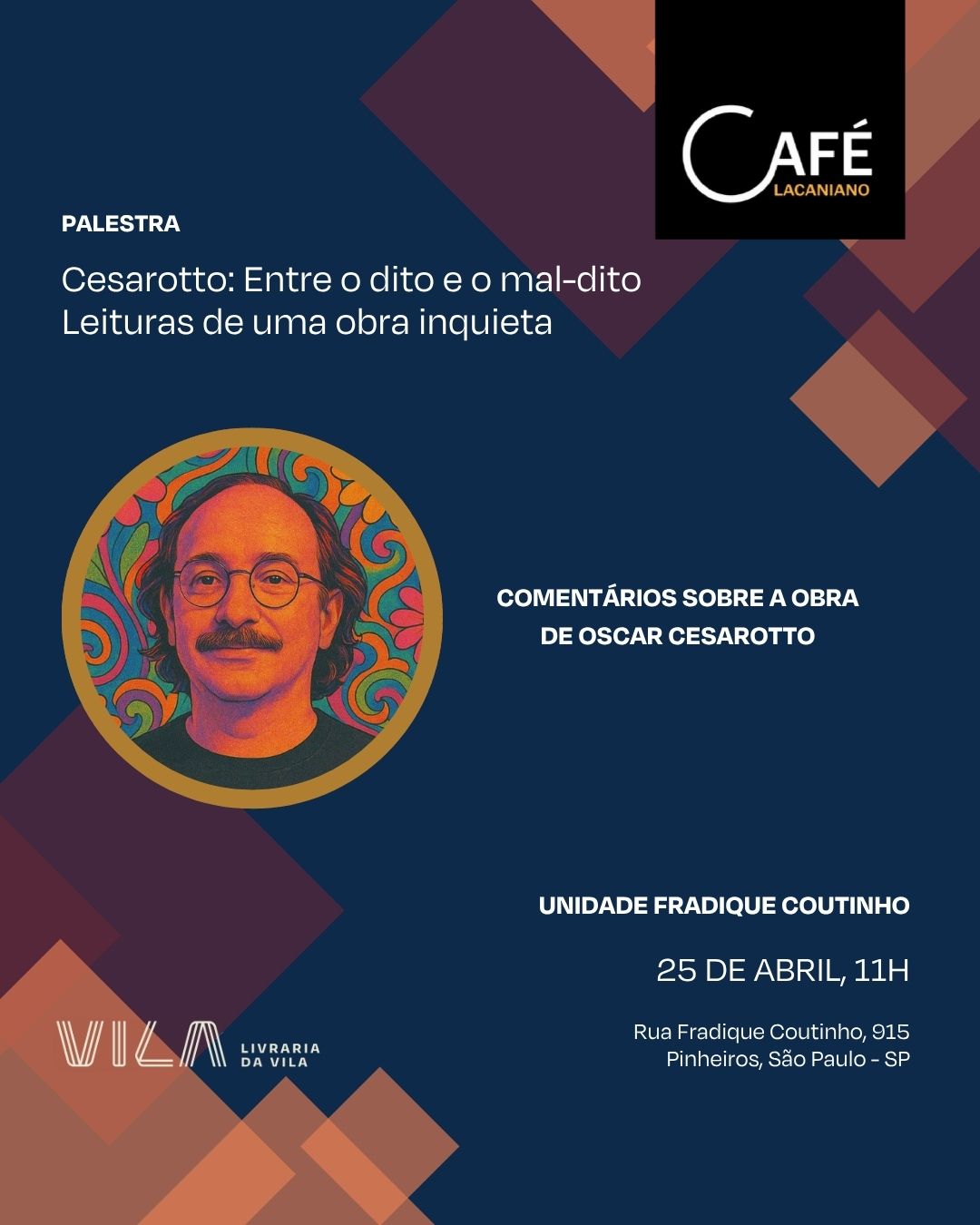 « Todos Eventos Adicionar aos Favoritos 25 de abril das 11:00 às 13:00 CESAROTTO: ENTRE O DITO E O MAL-DITO – LEITURAS DE UMA OBRA INQUEITA – CAFÉ LACANIANO + Google Agenda+ Exportar iCal Compartilhar Detalhes: Data: 25 de abril Hora: 11:00 às 13:00 Telefone: (11) 3814-5811 Local: Fradique Rua Fradique Coutinho, 915 - Pinheiros São Paulo, São Paulo 05416-011 Brasil