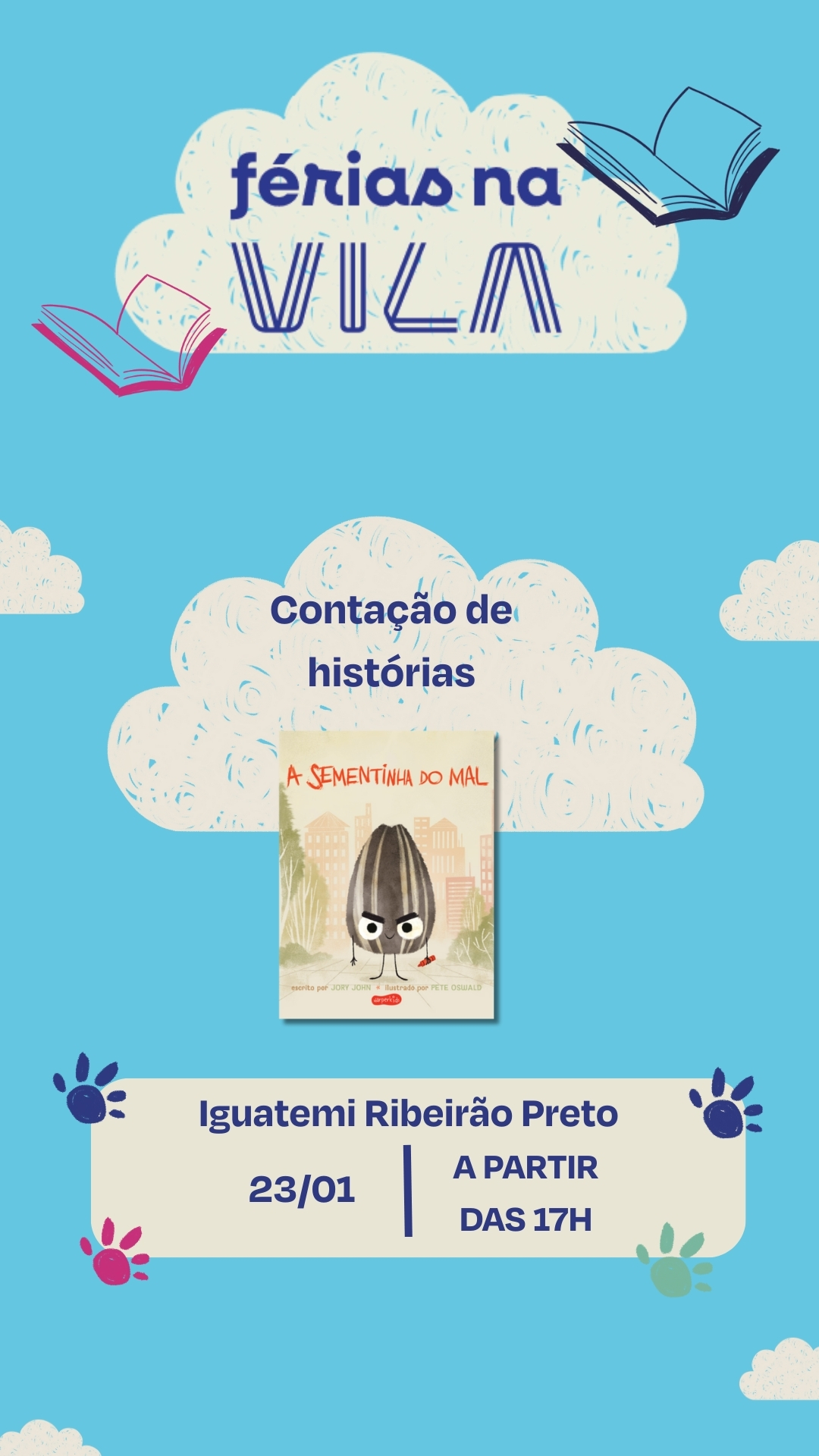 « Todos Eventos Adicionar aos Favoritos Este evento já passou. 23 de janeiro das 15:00 às 16:00 FÉRIAS NA VILA COM HARPERKIDS Contação de história com Harperkids Conheça a sementinha mais cruel, mal-educada e durona de todas! A sementinha do mal não quer ser gentil com ninguém. Ele não tem paciência com os outros, fura a fila, e, pasme, nunca devolve o carrinho de supermercado ao lugar certo! Ah, e também faz questão de ser o mais barulhento que pode na biblioteca. A verdade é que ele não está nem aí. Mas, um dia, a astuta sementinha enfim entende que a vida não precisa ser tão amarga, e que ser bom é bem mais divertido. Para isso, precisa aprender a ter equilíbrio e ser a soma ideal de todos os fatores positivos e negativos — porque, afinal, não dá pra ser perfeito! Dos criadores dos best-sellers O feijão maneiro, O ovo bonzinho e A uva azeda, Jory John e Pete Oswald, conheça esta sementinha espevitada e do maaaaaaaaal em uma história divertida e reflexiva sobre o impacto de nossas ações. + Google Agenda+ Exportar iCal Compartilhar Detalhes: Data: 23 de janeiro Hora: 15:00 às 16:00 Telefone: (16) 4042-4112 Local: Shopping Iguatemi – Ribeirão Preto Av.Luiz Eduardo de Toledo Prado, 900 Ribeirão Preto, São Paulo 14027-250 Brasil