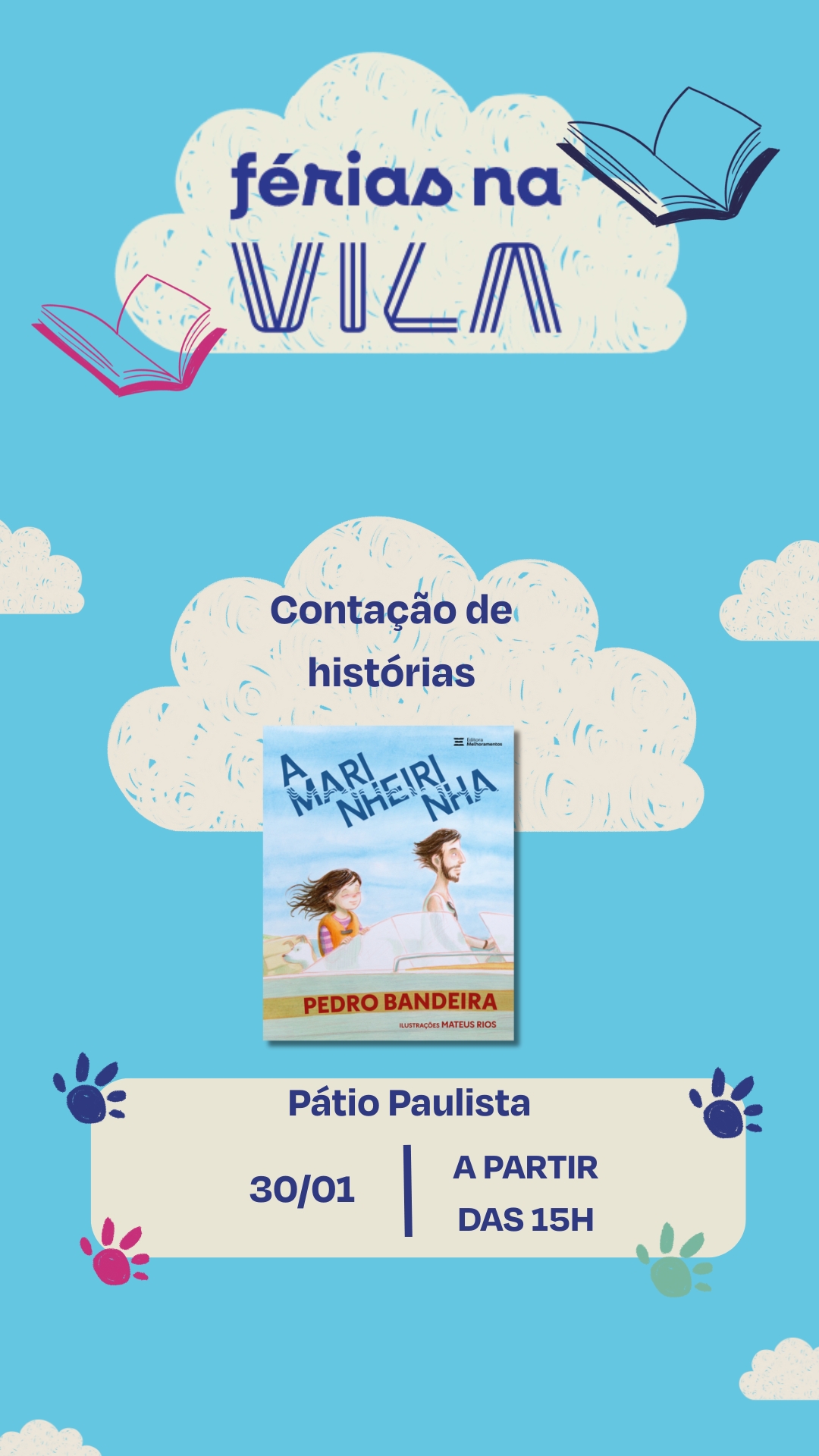« Todos Eventos Adicionar aos Favoritos 30 de janeiro das 15:00 às 16:00 FÉRIAS NA VILA COM MELHORAMENTOS Naquele fim de semana, haveria uma corrida de lanchas, e o pai de Tininha estava confiante na vitória. Claro que a menina queria acompanhá-lo, mas seu pai não permitiu que ela participasse, pois poderia ser muito perigoso. Tininha é observadora, presta atenção aos detalhes, e algo não passa despercebido aos olhares e ouvidos da menina. Então, ela resolve entrar em ação para ajudar seu pai a vencer a corrida! Pedro Bandeira nos traz essa narrativa cheia de perigo, emoção e coragem. As lindas ilustrações de Mateus Rios trazem o mar e a aventura da corrida para muito perto do leitor. "Pedro escolhe enxergar o mundo pelos olhos de Tininha e, a partir de sua esperteza, constrói uma história para guardarmos no coração." – André Catarinacho Contação de história com Melhoramentos + Google Agenda+ Exportar iCal Compartilhar Detalhes: Data: 30 de janeiro Hora: 15:00 às 16:00 Telefone: (11) 4210-6902 Local: Shopping Pátio Paulista R. Treze de Maio, 1947 - Bela Vista São Paulo, São Paulo 01327-900