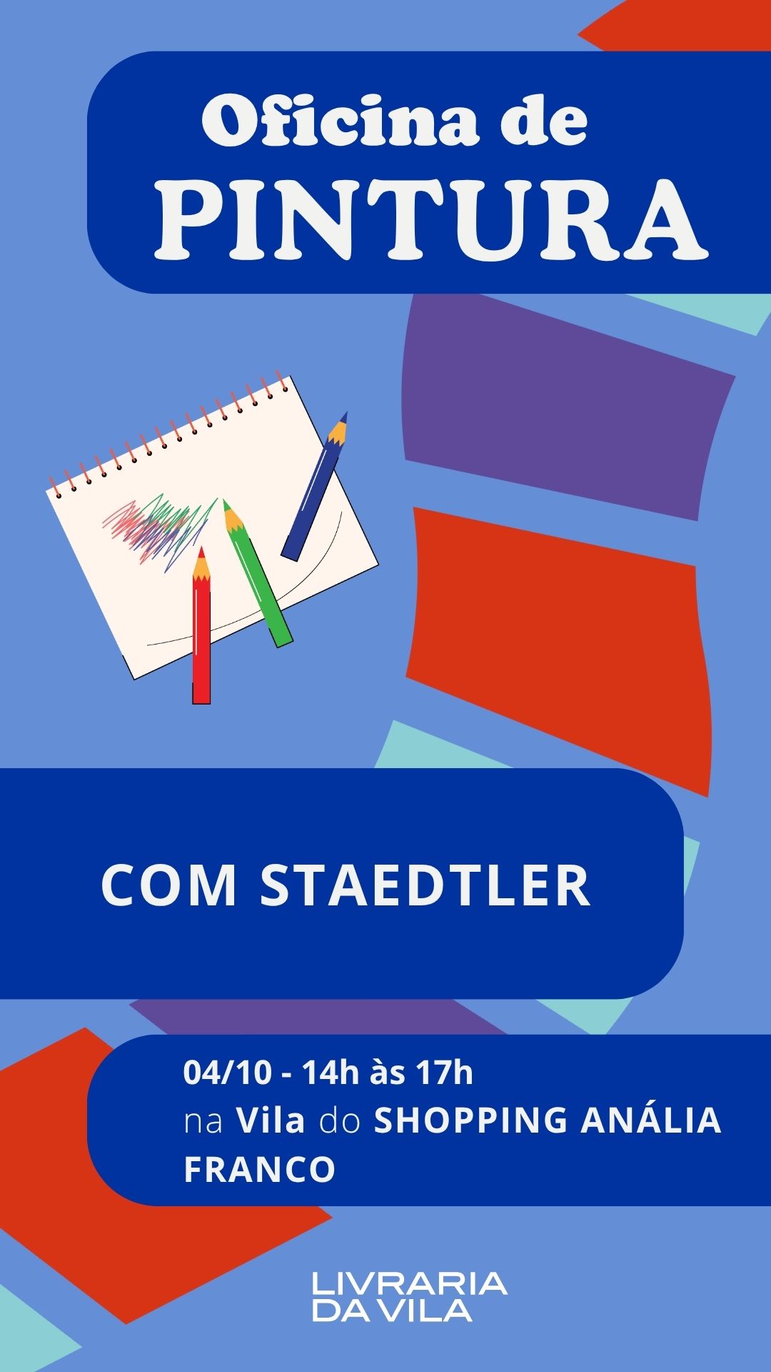 « Todos Eventos Adicionar aos Favoritos 4 de outubro das 14:00 às 17:00 OFICINA DE PINTURA COM STAEDTLER + Google Agenda+ Exportar iCal Compartilhar Detalhes: Data: 4 de outubro Hora: 14:00 às 17:00 Telefone: (11) 4210-0882 Local: Shopping Anália Franco Av. Regente Feijó, nº 1739 – Loja L11 – Vl. São Paulo, São Paulo 03342-900